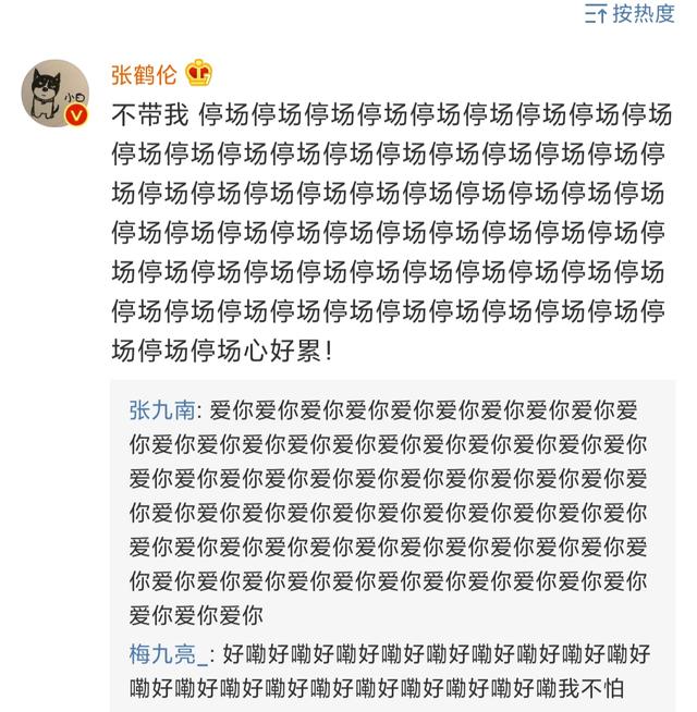 张鹤伦表示不带他,要给这些演员们停场。张鹤伦因团综的录制并不在队里。“心好累”对张鹤伦此时心情的描述恰到好处。