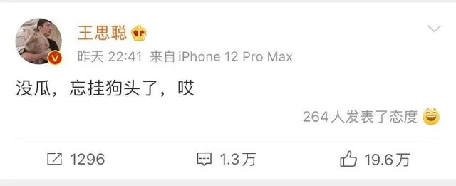 王思聪看到画风变得很快,立马在微博发了一条澄清自己忘了加“狗头!”